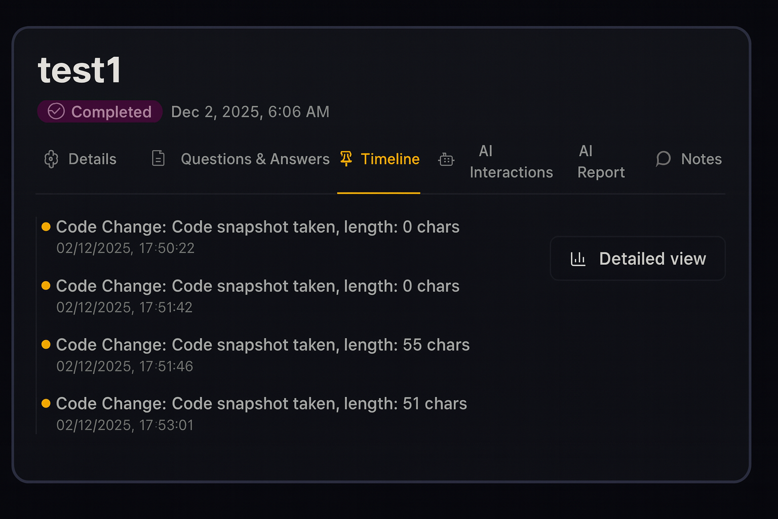 See how candidates refine and improve their code over time. Every retry, edit, and adjustment is captured for full visibility.